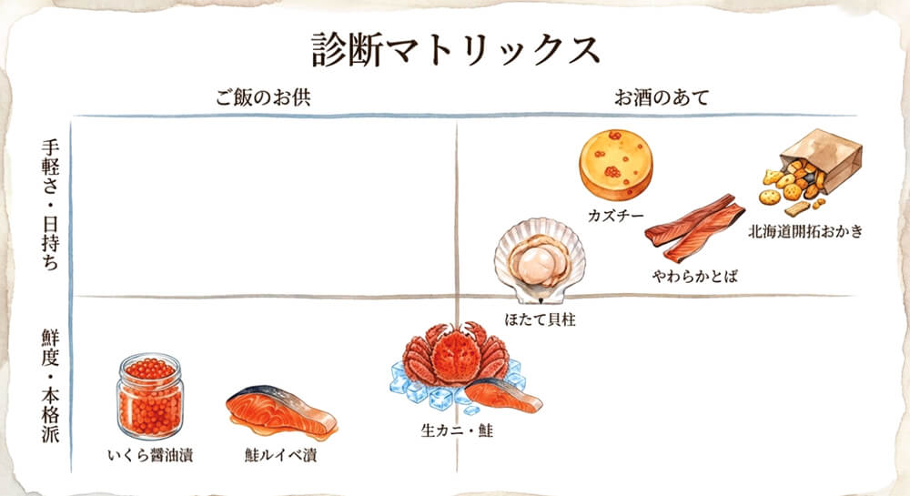 家族への北海道お土産選びで大切なのは、「食卓の主役になれる満足感」と「準備の手軽さ」のバランスです。