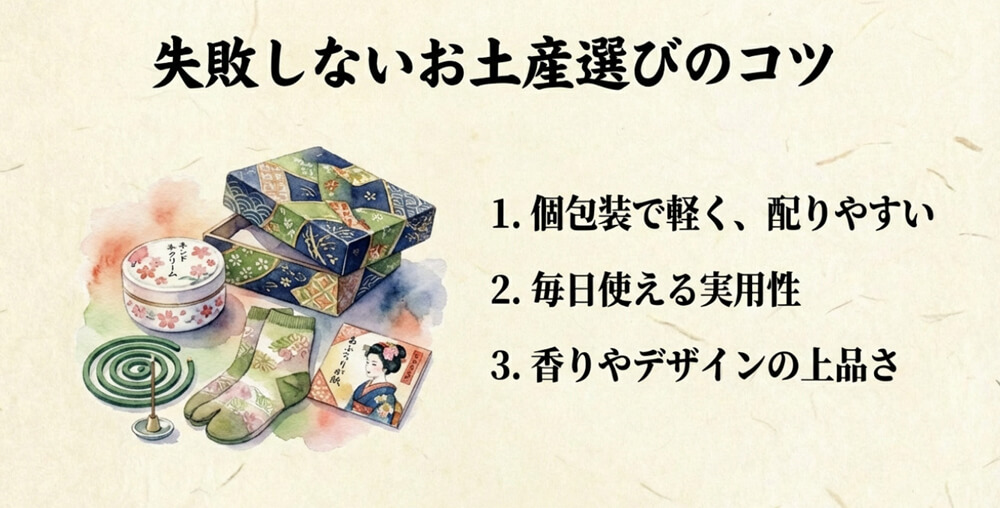 失敗しない京都のお土産選びのポイントは、下記の3つです。