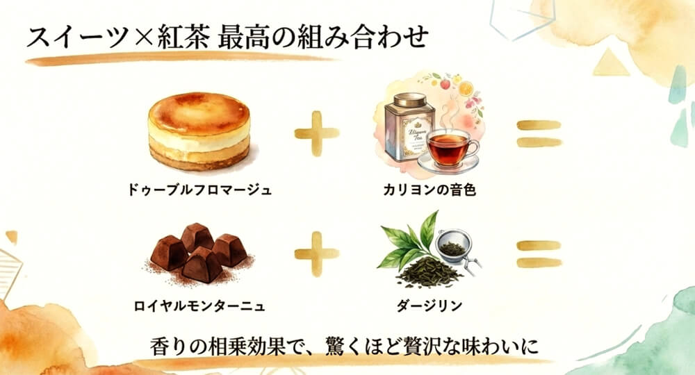 お菓子と紅茶をセットで揃えて、完璧な組み合わせを堪能しましょう。
