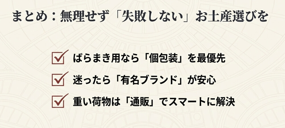 忙しいときほど、「無理せず選べる」「失敗しにくい」お土産が助けになります。
